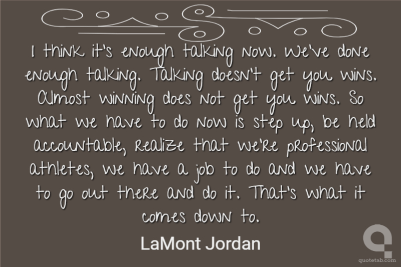 I think it's enough talking now. We've done enough talking. Talking doesn't get you wins. Almost winning does not get you wins. So what we have to do now is step up, be held accountable, realize that we're professional athletes, we have a job to do and we have to go out there and do it. That's what it comes down to.