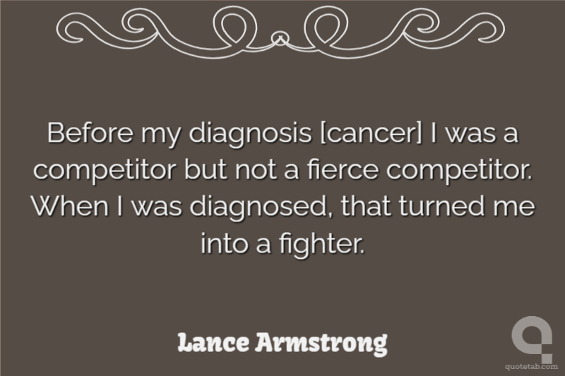 Before my diagnosis [cancer] I was a competitor but not a fierce competitor. When I was diagnosed, that turned me into a fighter.