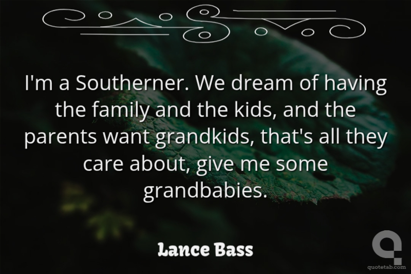 I'm a Southerner. We dream of having the family and the kids, and the parents want grandkids, that's all they care about, give me some grandbabies.