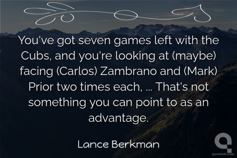 You've got seven games left with the Cubs, and you're looking at (maybe) facing (Carlos) Zambrano and (Mark) Prior two times each, ... That's not something you can point to as an advantage.