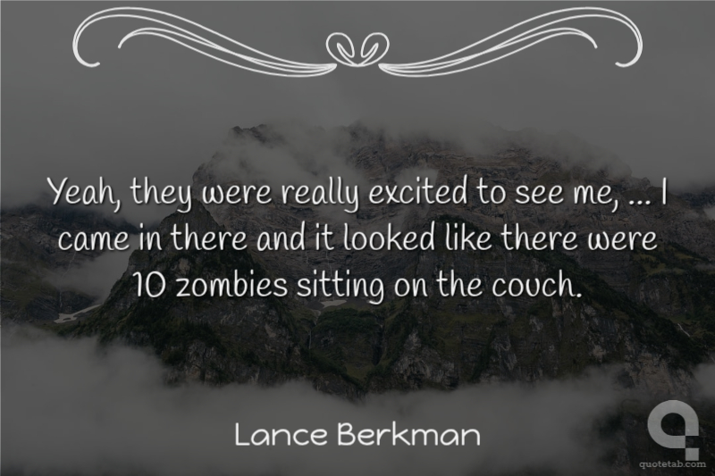 Yeah, they were really excited to see me, ... I came in there and it looked like there were 10 zombies sitting on the couch.