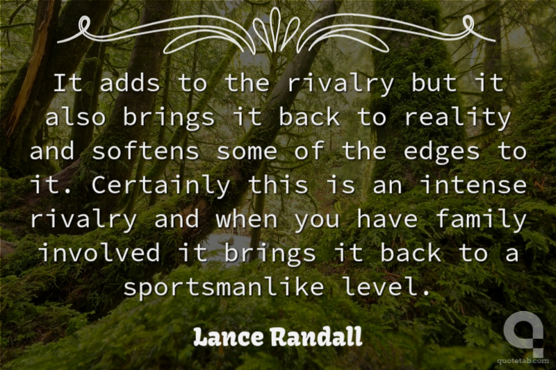 It adds to the rivalry but it also brings it back to reality and softens some of the edges to it. Certainly this is an intense rivalry and when you have family involved it brings it back to a sportsmanlike level.
