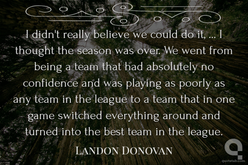 I didn't really believe we could do it, ... I thought the season was over. We went from being a team that had absolutely no confidence and was playing as poorly as any team in the league to a team that in one game switched everything around and turned into the best team in the league.