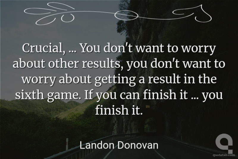 Crucial, ... You don't want to worry about other results, you don't want to worry about getting a result in the sixth game. If you can finish it ... you finish it.