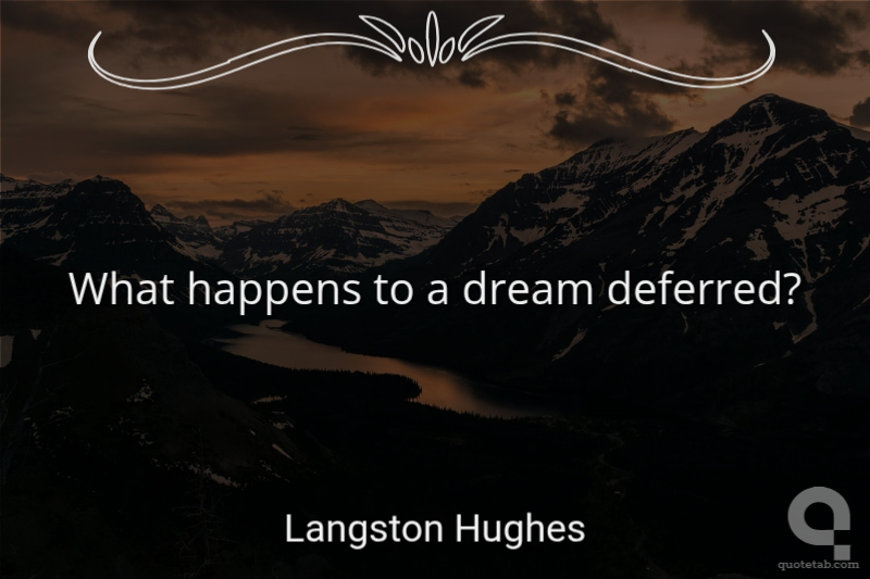 What happens to a dream deferred? Does it dry up like a raisin in the sun? Or fester like a sore-- And then run? Does it stink like rotten meat? Or crust and sugar over-- like a syrupy sweet? Maybe it just sags like a heavy load. Or does it explode?