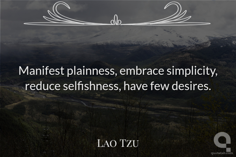 Manifest plainness, embrace simplicity, reduce selfishness, have few desires.