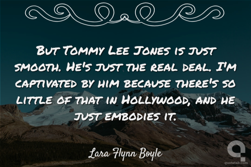But Tommy Lee Jones is just smooth. He's just the real deal. I'm captivated by him because there's so little of that in Hollywood, and he just embodies it.