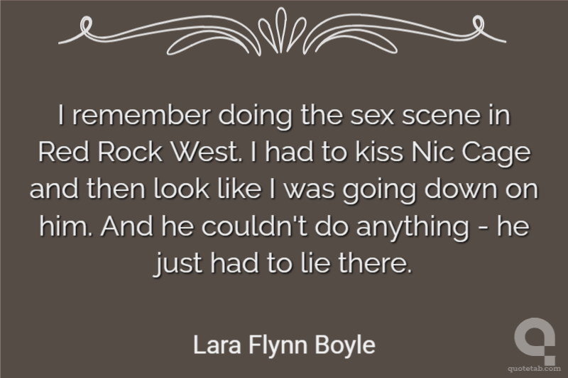 I remember doing the sex scene in Red Rock West. I had to kiss Nic Cage and then look like I was going down on him. And he couldn't do anything - he just had to lie there.