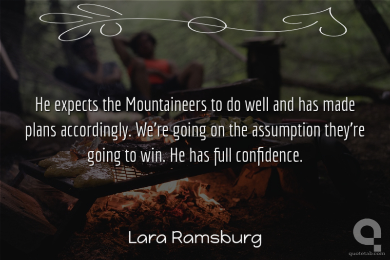 He expects the Mountaineers to do well and has made plans accordingly. We're going on the assumption they're going to win. He has full confidence.