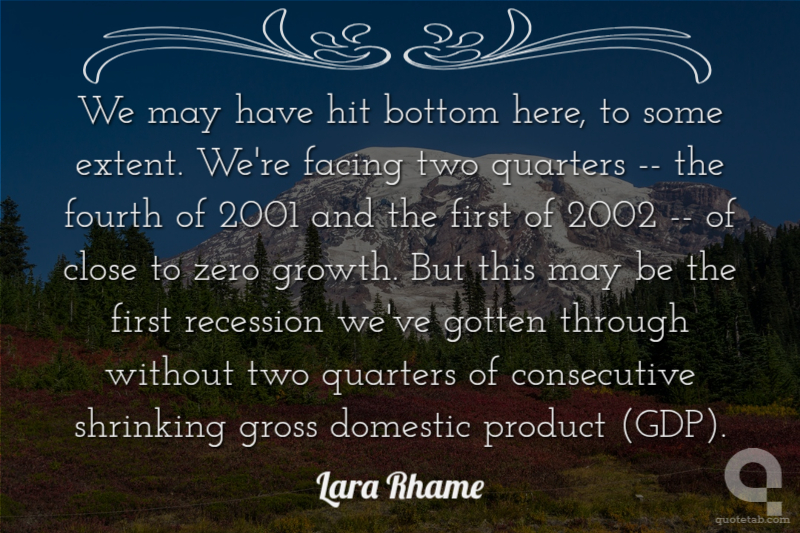 We may have hit bottom here, to some extent, ... We're facing two quarters -- the fourth of 2001 and the first of 2002 -- of close to zero growth. But this may be the first recession we've gotten through without two quarters of consecutive shrinking gross domestic product (GDP).