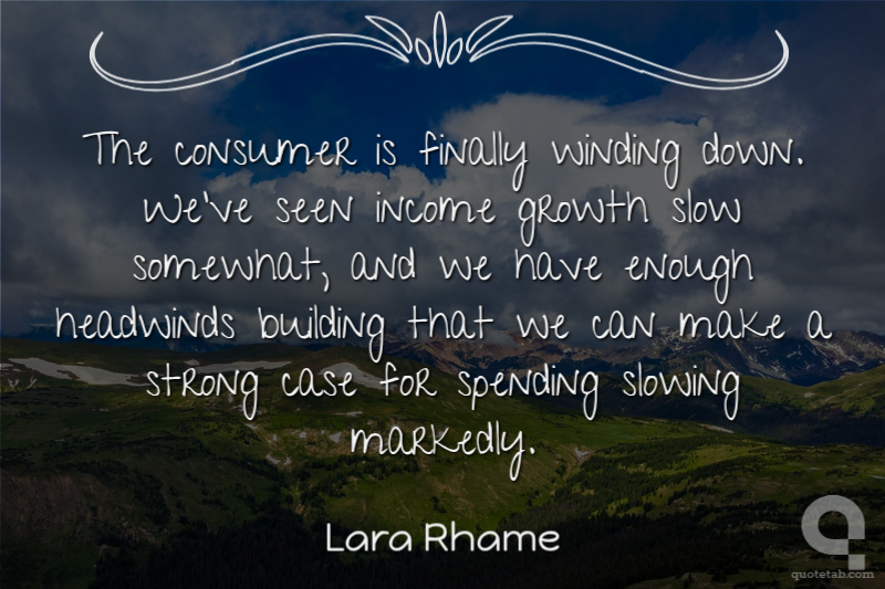 The consumer is finally winding down, ... We've seen income growth slow somewhat, and we have enough headwinds building that we can make a strong case for spending slowing markedly.