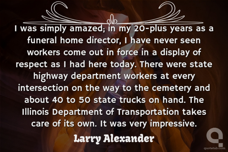I was simply amazed; in my 20-plus years as a funeral home director, I have never seen workers come out in force in a display of respect as I had here today. There were state highway department workers at every intersection on the way to the cemetery and about 40 to 50 state trucks on hand. The Illinois Department of Transportation takes care of its own. It was very impressive.