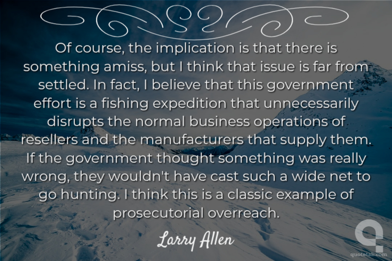 Of course, the implication is that there is something amiss, but I think that issue is far from settled. In fact, I believe that this government effort is a fishing expedition that unnecessarily disrupts the normal business operations of resellers and the manufacturers that supply them. If the government thought something was really wrong, they wouldn't have cast such a wide net to go hunting. I think this is a classic example of prosecutorial overreach.