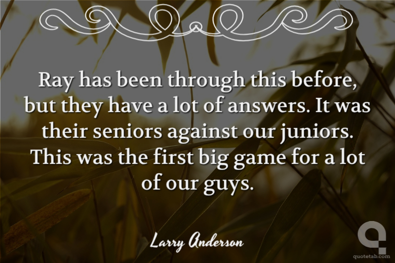 Ray has been through this before, but they have a lot of answers. It was their seniors against our juniors. This was the first big game for a lot of our guys.