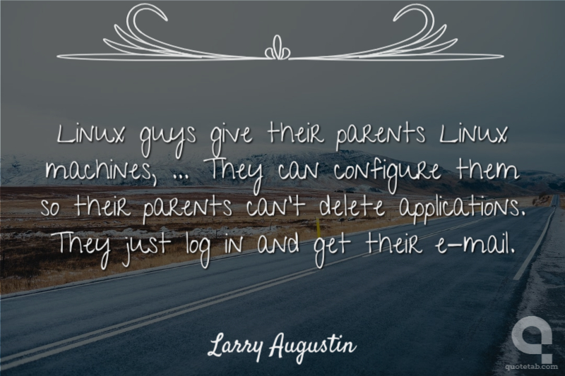 Linux guys give their parents Linux machines, ... They can configure them so their parents can't delete applications. They just log in and get their e-mail.