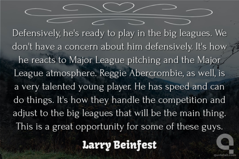Defensively, he's ready to play in the big leagues. We don't have a concern about him defensively. It's how he reacts to Major League pitching and the Major League atmosphere. Reggie Abercrombie, as well, is a very talented young player. He has speed and can do things. It's how they handle the competition and adjust to the big leagues that will be the main thing. This is a great opportunity for some of these guys.