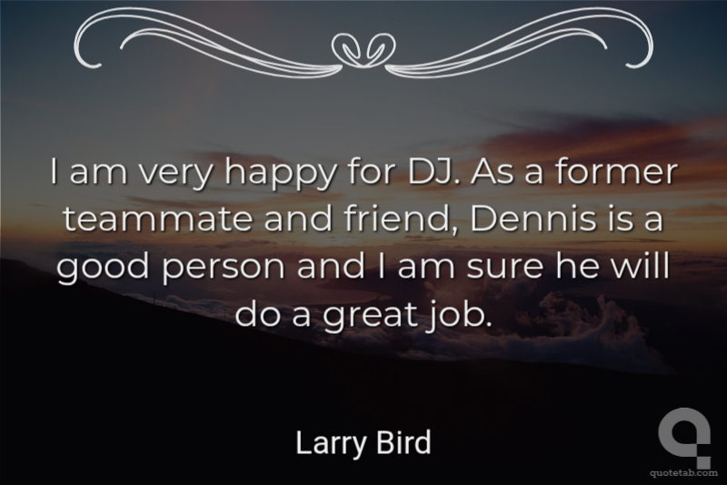 I am very happy for DJ, ... As a former teammate and friend, Dennis is a good person and I am sure he will do a great job.