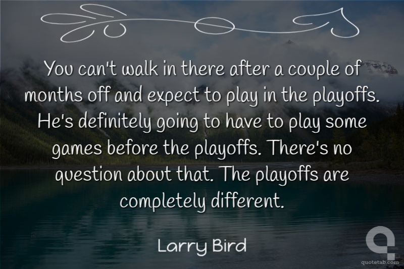 You can't walk in there after a couple of months off and expect to play in the playoffs. He's definitely going to have to play some games before the playoffs. There's no question about that. The playoffs are completely different.