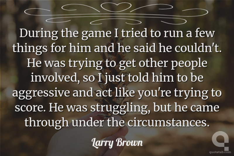 During the game I tried to run a few things for him and he said he couldn't. He was trying to get other people involved, so I just told him to be aggressive and act like you're trying to score. He was struggling, but he came through under the circumstances.