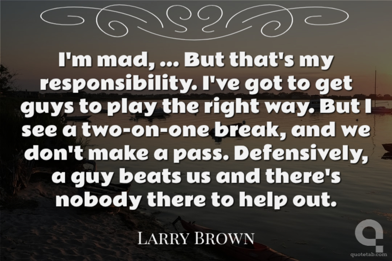 I'm mad, ... But that's my responsibility. I've got to get guys to play the right way. But I see a two-on-one break, and we don't make a pass. Defensively, a guy beats us and there's nobody there to help out.