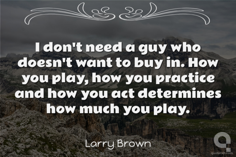 I don't need a guy who doesn't want to buy in. How you play, how you practice and how you act determines how much you play.