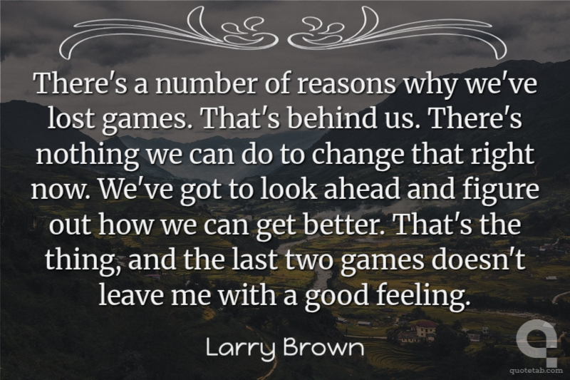 There's a number of reasons why we've lost games. That's behind us. There's nothing we can do to change that right now. We've got to look ahead and figure out how we can get better. That's the thing, and the last two games doesn't leave me with a good feeling.