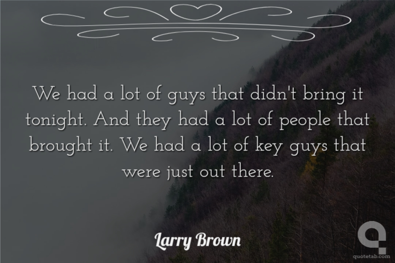 We had a lot of guys that didn't bring it tonight. And they had a lot of people that brought it. We had a lot of key guys that were just out there.