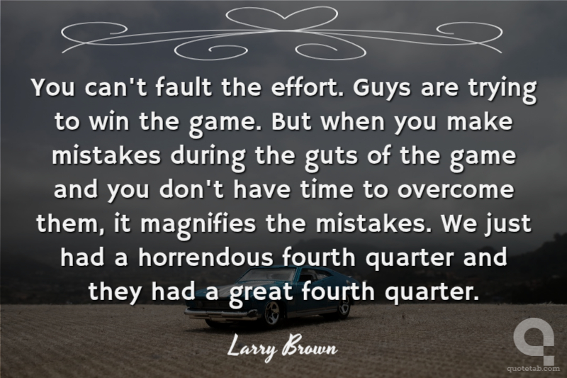 You can't fault the effort. Guys are trying to win the game. But when you make mistakes during the guts of the game and you don't have time to overcome them, it magnifies the mistakes. We just had a horrendous fourth quarter and they had a great fourth quarter.