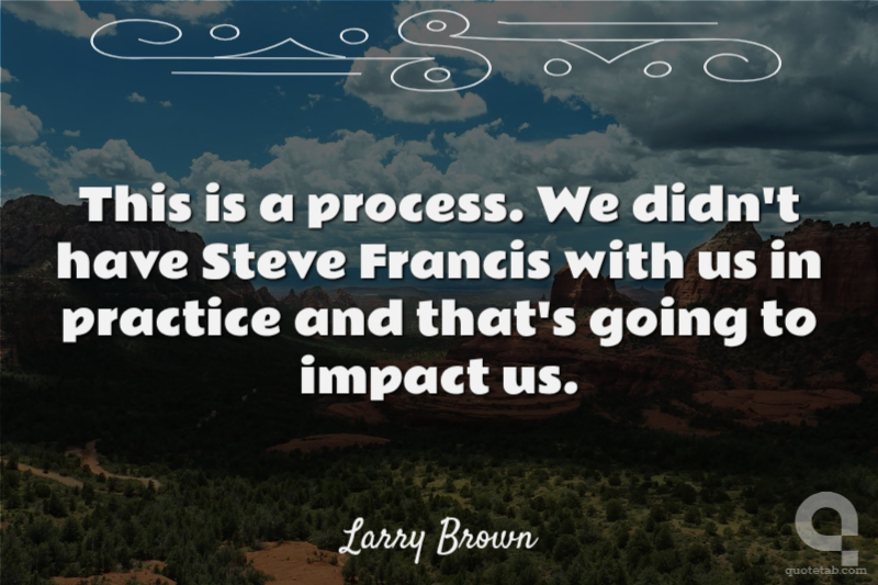 This is a process. We didn't have Steve Francis with us in practice and that's going to impact us.
