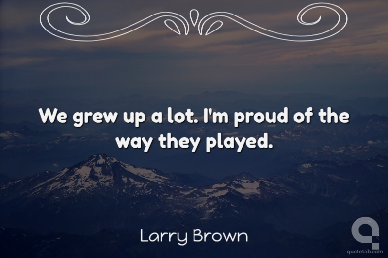 We grew up a lot. I'm proud of the way they played.