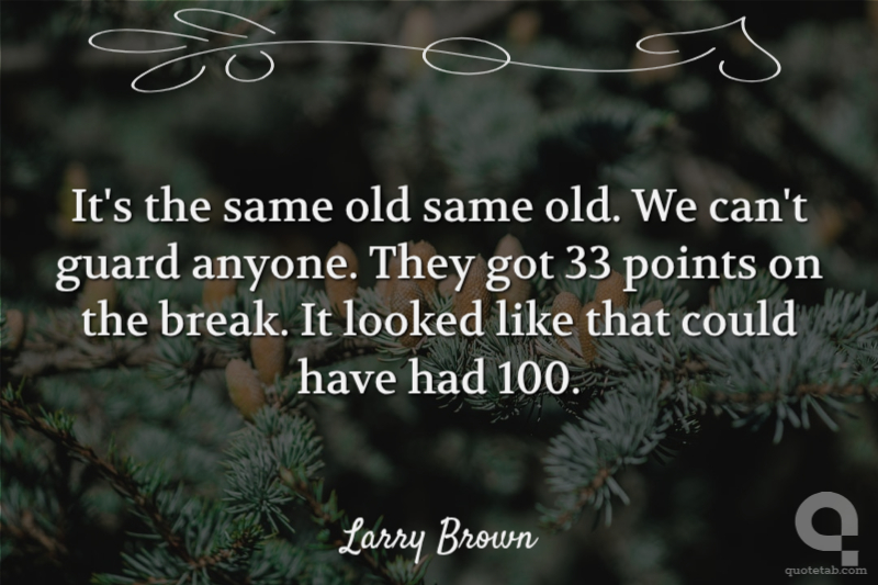 It's the same old same old. We can't guard anyone. They got 33 points on the break. It looked like that could have had 100.