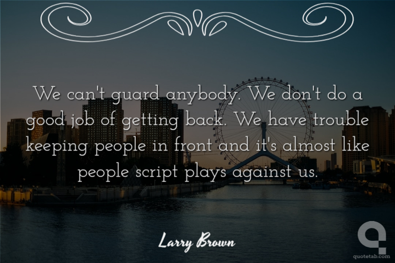 We can't guard anybody. We don't do a good job of getting back. We have trouble keeping people in front and it's almost like people script plays against us.