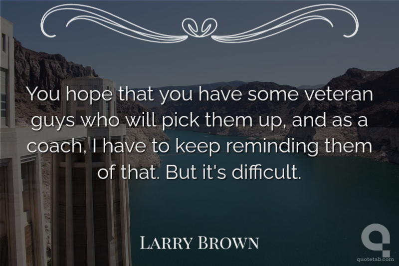 You hope that you have some veteran guys who will pick them up, and as a coach, I have to keep reminding them of that. But it's difficult.