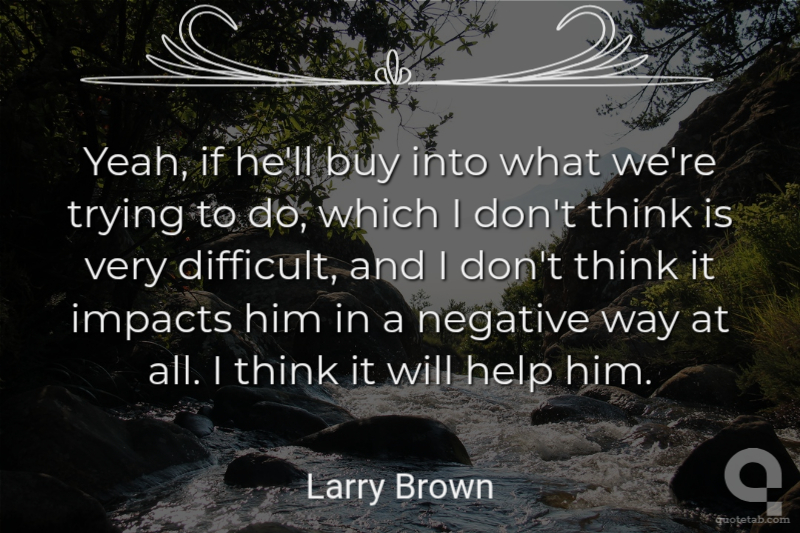 Yeah, if he'll buy into what we're trying to do, which I don't think is very difficult, and I don't think it impacts him in a negative way at all. I think it will help him.