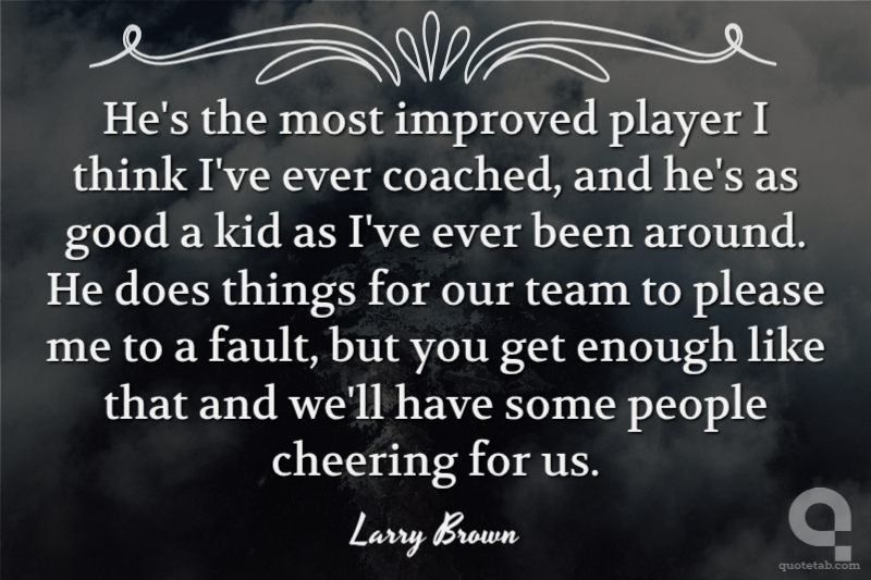 He's the most improved player I think I've ever coached, and he's as good a kid as I've ever been around. He does things for our team to please me to a fault, but you get enough like that and we'll have some people cheering for us.