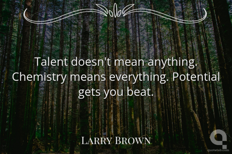 Talent doesn't mean anything. Chemistry means everything. Potential gets you beat.