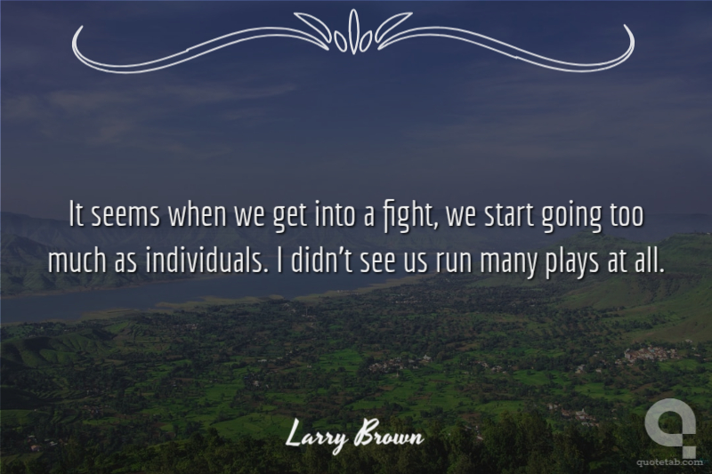 It seems when we get into a fight, we start going too much as individuals. I didn't see us run many plays at all.