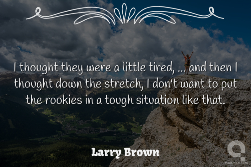 I thought they were a little tired, ... and then I thought down the stretch, I don't want to put the rookies in a tough situation like that.