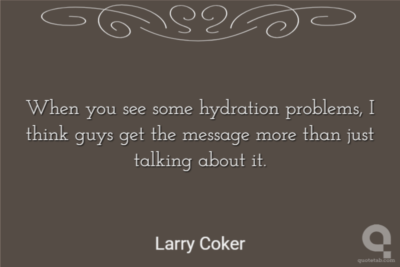 When you see some hydration problems, I think guys get the message more than just talking about it.