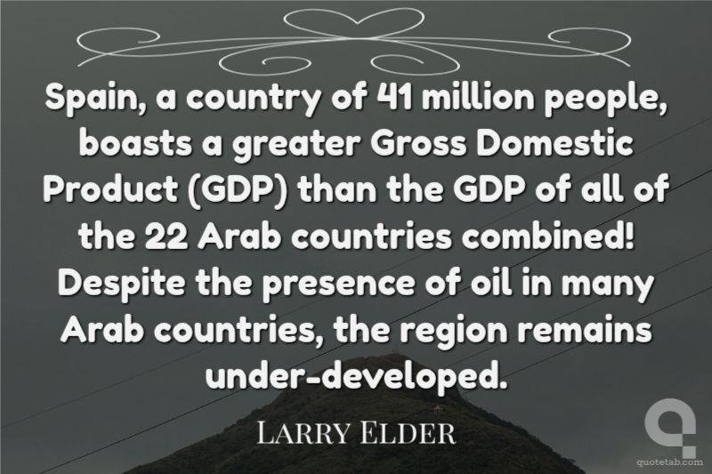Spain, a country of 41 million people, boasts a greater Gross Domestic Product (GDP) than the GDP of all of the 22 Arab countries combined! Despite the presence of oil in many Arab countries, the region remains under-developed.