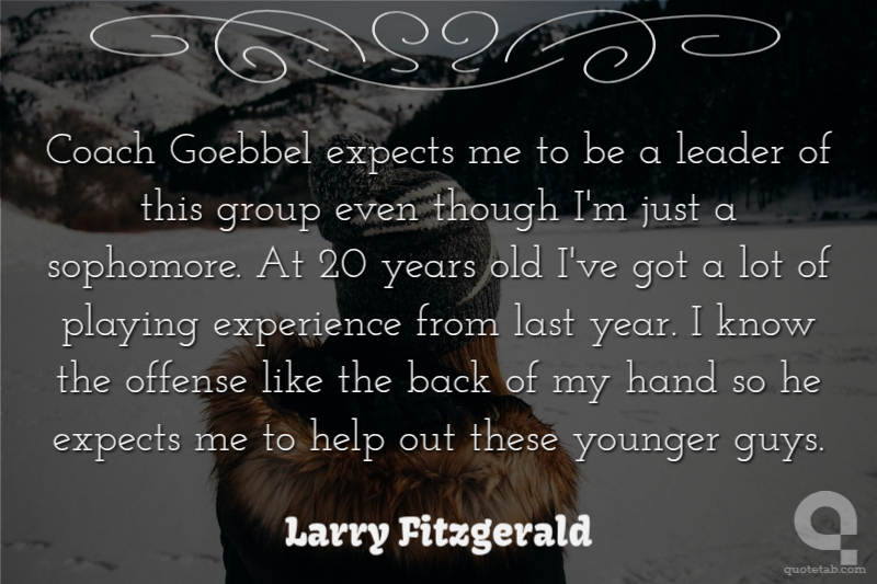 Coach Goebbel expects me to be a leader of this group even though I'm just a sophomore. At 20 years old I've got a lot of playing experience from last year. I know the offense like the back of my hand so he expects me to help out these younger guys.