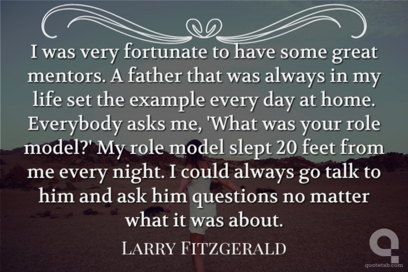 I was very fortunate to have some great mentors. A father that was always in my life set the example every day at home. Everybody asks me, 'What was your role model?' My role model slept 20 feet from me every night. I could always go talk to him and ask him questions no matter what it was about.