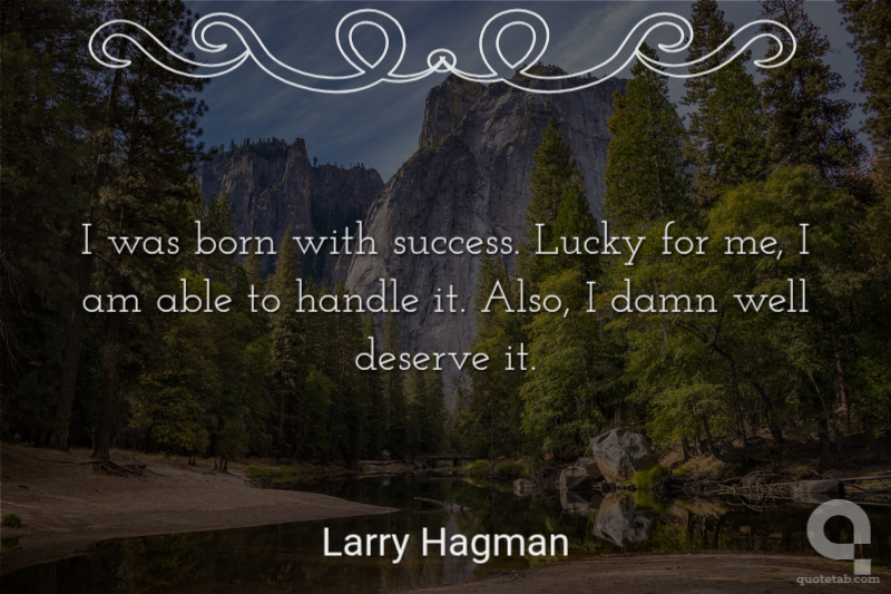 I was born with success. Lucky for me, I am able to handle it. Also, I damn well deserve it.