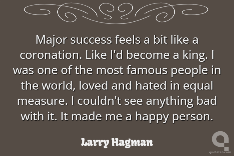 Major success feels a bit like a coronation. Like I'd become a king. I was one of the most famous people in the world, loved and hated in equal measure. I couldn't see anything bad with it. It made me a happy person.