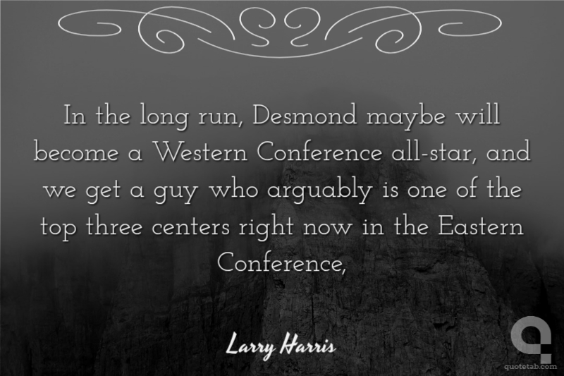 In the long run, Desmond maybe will become a Western Conference all-star, and we get a guy who arguably is one of the top three centers right now in the Eastern Conference,