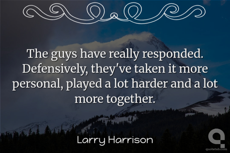 The guys have really responded. Defensively, they've taken it more personal, played a lot harder and a lot more together.