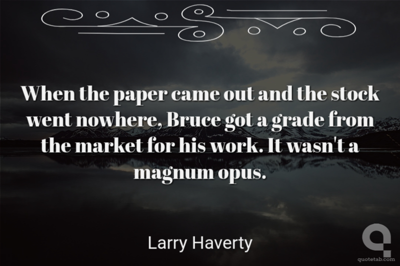 When the paper came out and the stock went nowhere, Bruce got a grade from the market for his work. It wasn't a magnum opus.