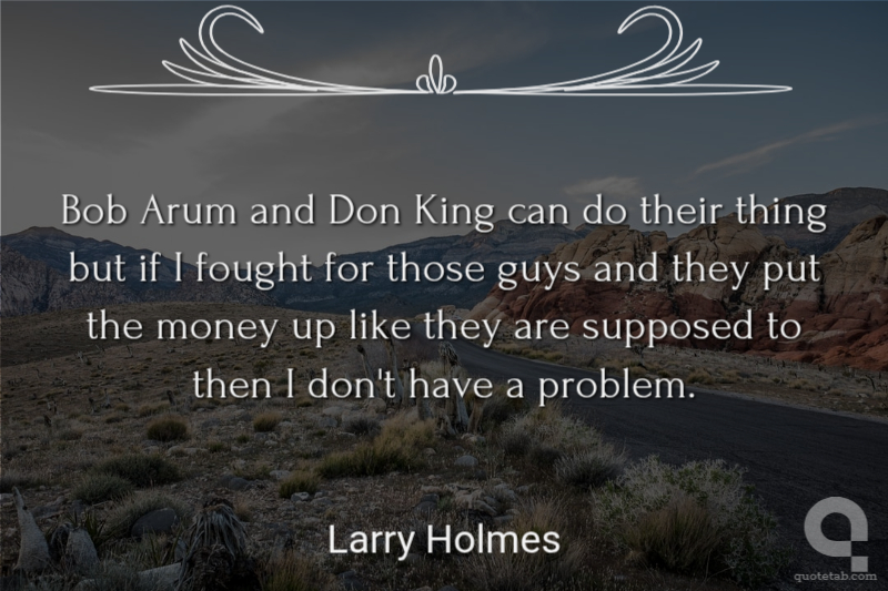 Bob Arum and Don King can do their thing but if I fought for those guys and they put the money up like they are supposed to then I don't have a problem.
