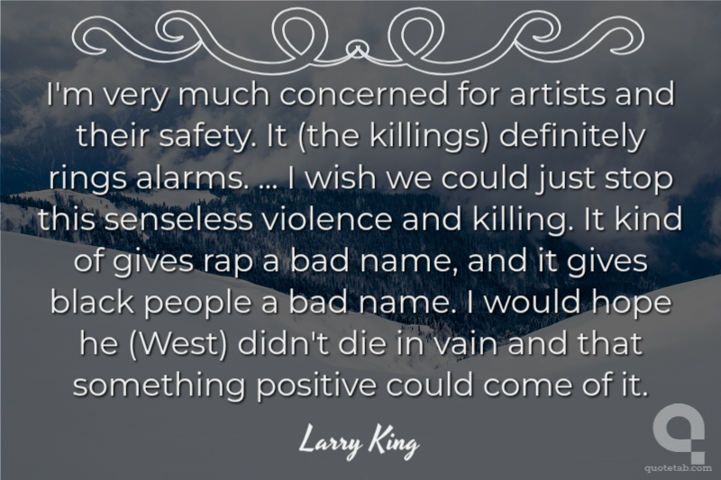I'm very much concerned for artists and their safety. It (the killings) definitely rings alarms. ... I wish we could just stop this senseless violence and killing. It kind of gives rap a bad name, and it gives black people a bad name. I would hope he (West) didn't die in vain and that something positive could come of it.