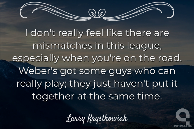 I don't really feel like there are mismatches in this league, especially when you're on the road. Weber's got some guys who can really play; they just haven't put it together at the same time.